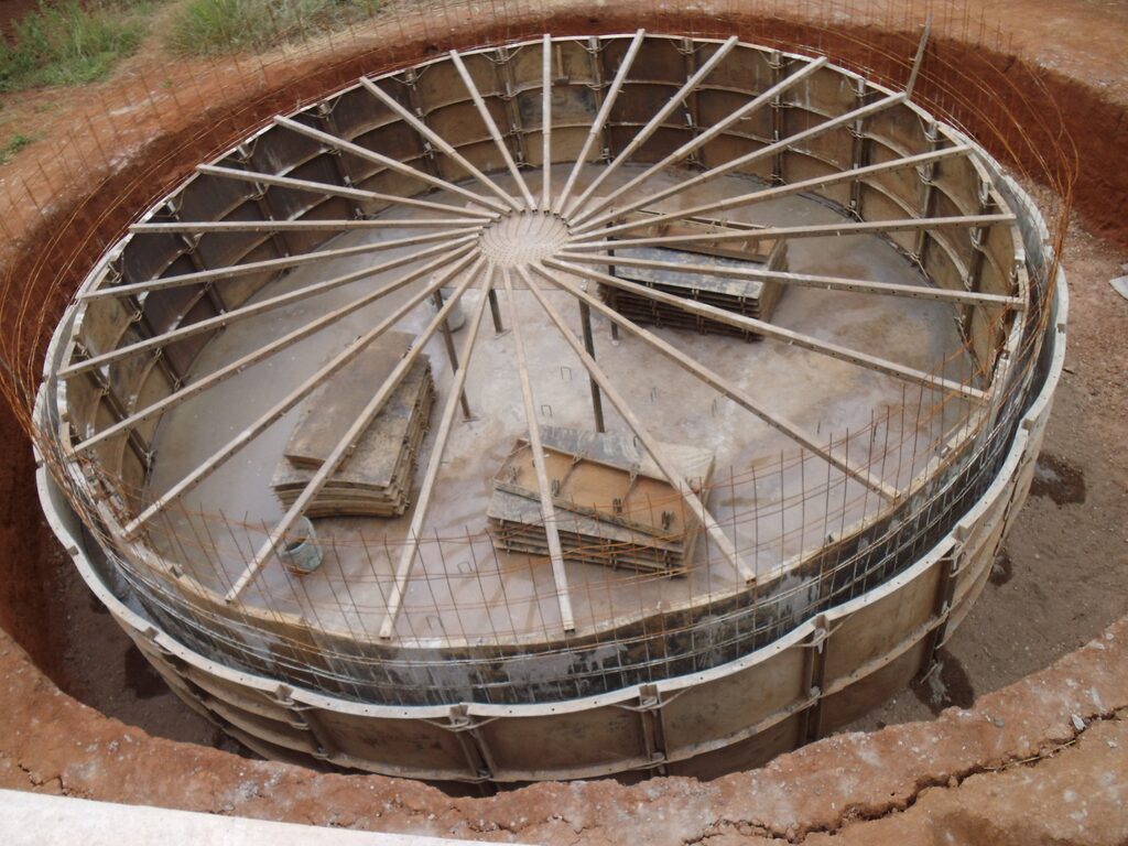 Es wurde die traditionelle Errichtung durch Ausgraben und Betonieren gewählt, weil dadurch Kosten gespart, einheimische Leute beschäftigt und die Wasserversorgung auch ohne technische Hilfsmittel möglich ist.