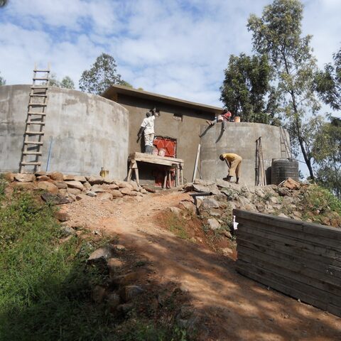 Diese werden durch Dach-, Brunnen- oder Quellwasser gespeist. Für die kontinuierliche Wasserversorgung wurden bereits 17 Tanks mit einem Volumen von 8.000 bis 175.000 Liter errichtet: Der Schwestern-Konvent verfügt über einen Wassertank mit 60.000 Litern, das Krankenhaus in Isingaro und das Krankenhaus Naykahanga über je zwei derselben Größe. Weiters stehen in Kandegeshu zwei 60.000 Liter-Tanks, Kayanga hat zwei Riesentanks mit je 175.000 Litern. Kleinere Einheiten von 8–25.000 Litern befinden sich in Isingaro und Kayanga. In Chabalisa gibt es zwei 60.000 Liter Tanks. Für das Krankenhaus Bushangaro wurde eine Wasserleitung verlegt. Dadurch hat dieses nun fließendes Wasser im OP.